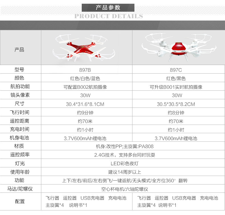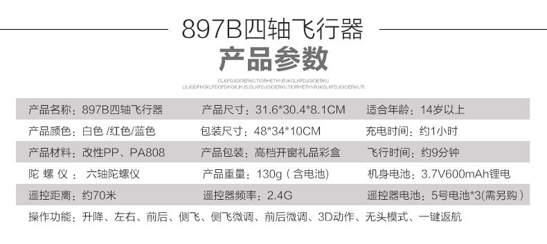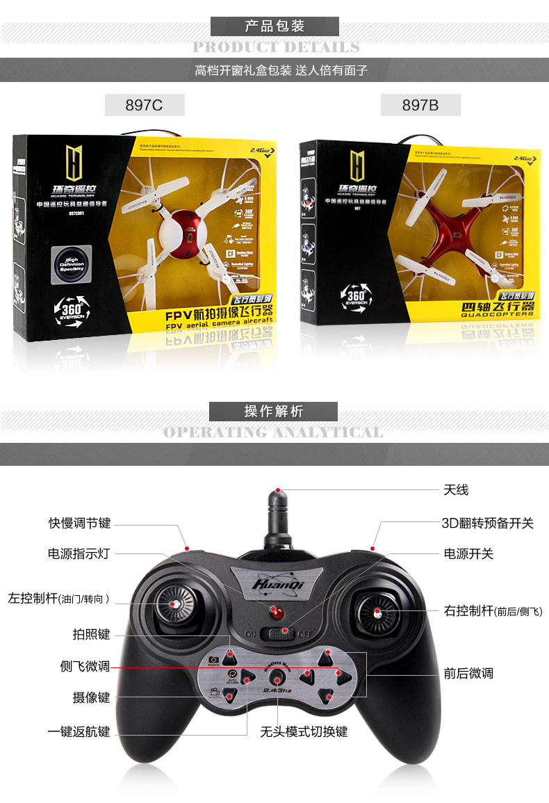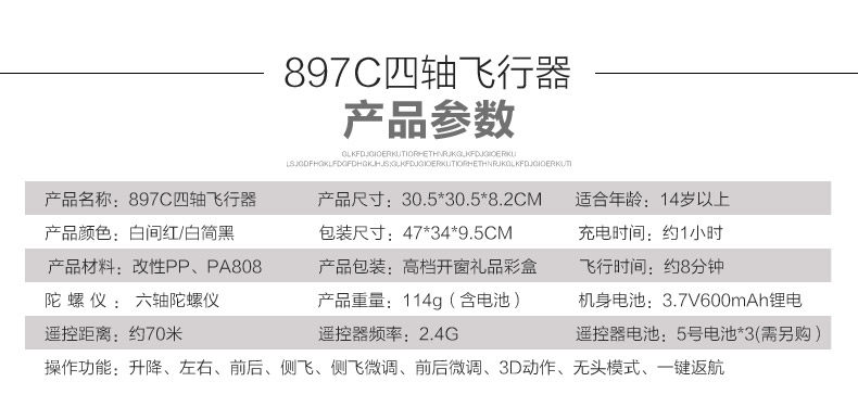描述:高清拍照摄像 无头模式 3D翻转 一键返航